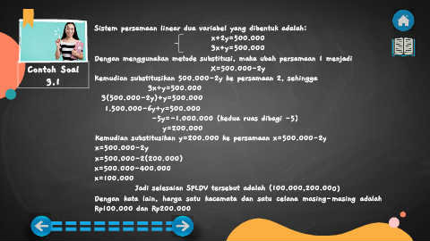 Jadi selesaian SPLDV tersebut adalah (100.000,200.000)