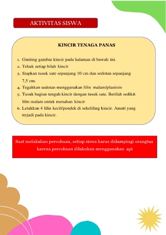 Saat melakukan percobaan, setiap siswa harus didampingi orangtua