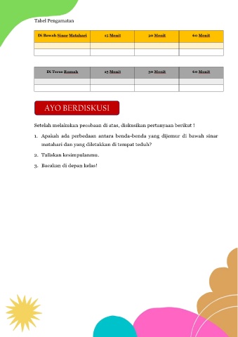 1.  Apakah  ada  perbedaan  antara  benda-benda  yang  dijemur  di  bawah  sinar