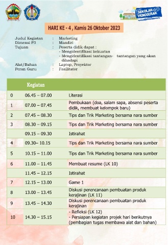 10 14.30 – 15.15 - Persiapan kegiatan projek hari berikutnya