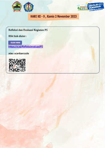 HARI KE - 9 , Kamis 2 November 2023 2023 Refleksi dan Evaluasi Kegiatan P5 Klik link disini : CLICK HERE https://s.id/RefleksievaluasiP5 atau scanbarcode