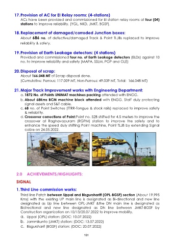 21. Major Track Improvement works with Engineering Department: