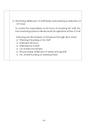H) Monitoring distribution of staff Duties and planning in reduction of