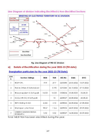 Line Diagram of division indicating Electrified & Non-Electrified Sections