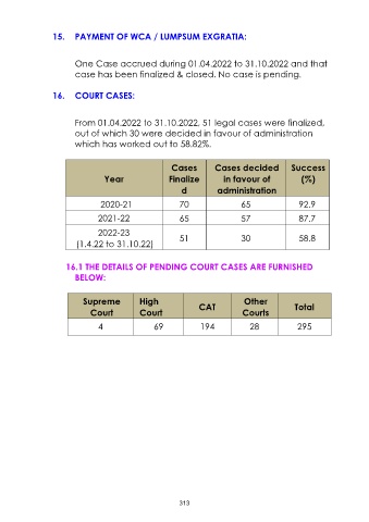 16.1 THE DETAILS OF PENDING COURT CASES ARE FURNISHED
