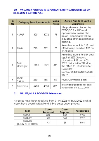 20. VACANCY POSITION IN IMPORTANT SAFETY CATEGORIES AS ON