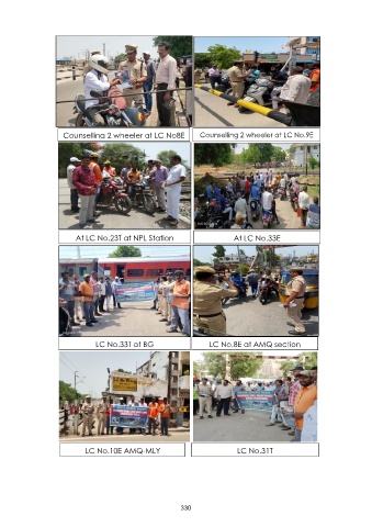 Counselling 2 wheeler at LC No8E Counselling 2 wheeler at LC No.9E At LC No.23T at NPL Station At LC No.33E LC No.33T at BG LC No.8E at AMQ section LC No.10E AMQ-MLY LC No.31T 330