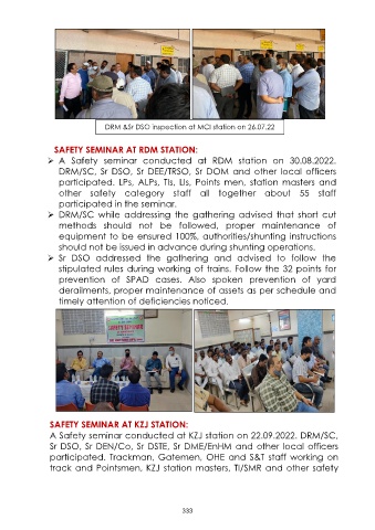 DRM &Sr DSO inspection at MCI station on 26.07.22