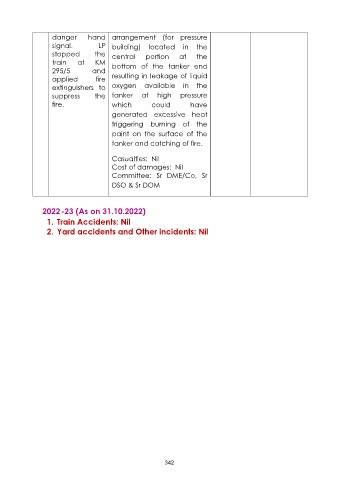 2. Yard accidents and Other incidents: Nil