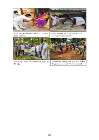 Pulse Polio Immunizaion done for under 05 Conducted House to House Survey for years Childrens Anti- Covid Vaccination Observing World Environmental Day at Shramdhan during the Swachh Bharat PC/KZJ Programme at Health Unit, Bellampalli 383