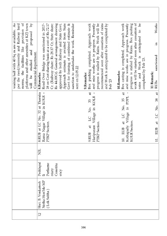 12 Shri. B. Venkatesh Peddapal NIL 8.RUB at LC No. 32 at Tharaka 8.Remarks: