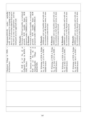 12. RUB at LC No. 42 at Provision of RUB not feasible on technical