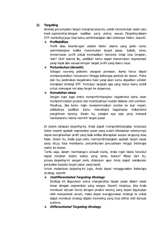 hasil segmenting dengan kualitas yang paling sesuai. Targeting dalam