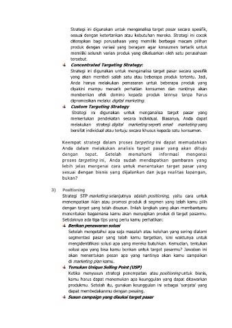 Strategi ini digunakan untuk menganalisa target pasar secara spesifik