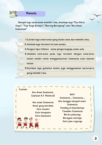1. Carilah lagu anak-anak yang kalian suka dan memiliki rima.