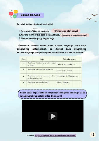 Kata-kata sebelum tanda koma disebut konjungsi atau kata