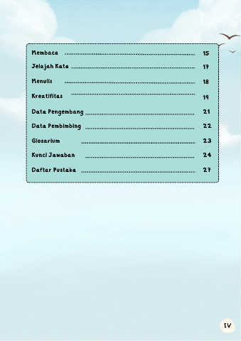 Membaca 15 Jelajah Kata 17 Menulis 18 Kreatifitas 19 Data Pengembang 21 Data Pembimbing 22 Glosarium 23 Kunci Jawaban 24 Daftar Pustaka 27