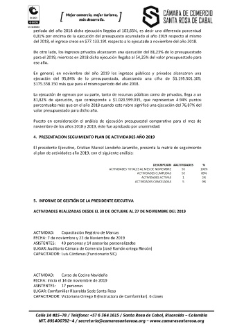 4. PRESENTACION SEGUIMIENTO PLAN DE ACTIVIDADES AÑO 2019