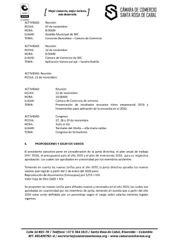 Teniendo en cuenta las nuevas tarifas para el año 2020, la junta directiva aprueba los nuevos