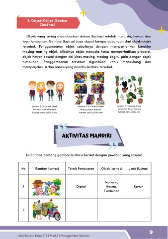 juga tumbuhan. Gambar ilustrasi juga dapat berupa gabungan dari objek-objek