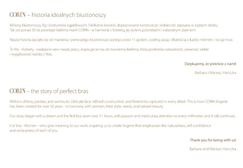 Tak od ponad 30 lat powstaje bielizna marki CORIN - w harmonii z Kobietą, jej stylem, potrzebami i naturalnym pięknem.