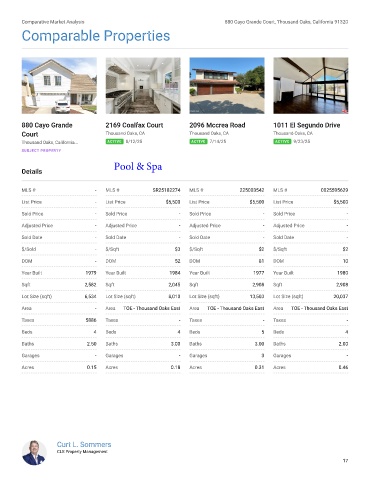 Comparative Market Analysis 880 Cayo Grande Court, Thousand Oaks, California 91320