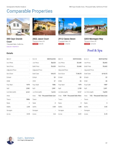 Comparative Market Analysis                                        880 Cayo Grande Court, Thousand Oaks, California 91320