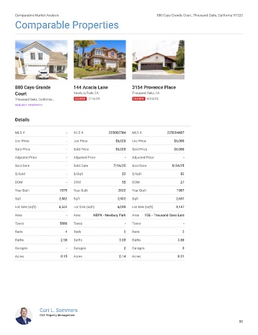 Comparative Market Analysis                                        880 Cayo Grande Court, Thousand Oaks, California 91320
