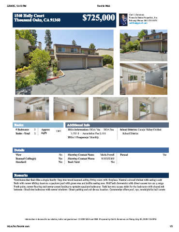 # Bedrooms 3 Approx 1301 HOA Information: HOA: Yes • HOA Fee School District: Conejo Valley Unified