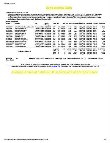 Average Active at 1,405 sq. ft. is $736,422 at $503.17 a foot.