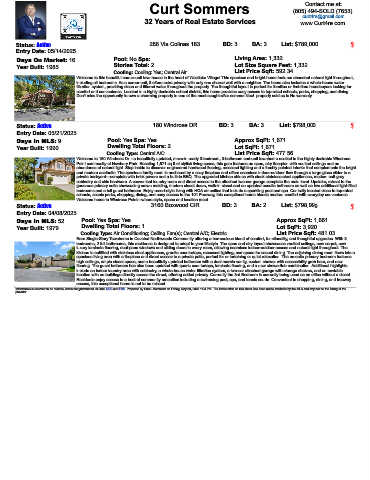 Information is deemed to be reliable, but is not guaranteed. © 2025 MLS and FBS. Prepared by Curt L Sommers on Friday, May 30, 2025 1:04 PM. The information on this sheet has been made available by the MLS and may not be the listing of the