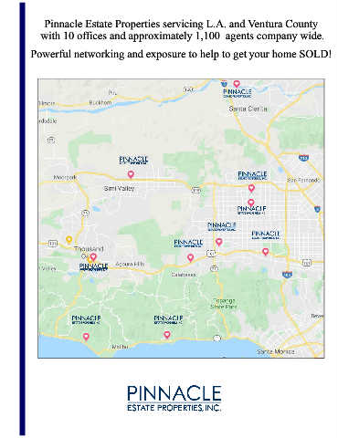 Pinnacle Estate Properties servicing L.A. and Ventura County with 10 offices and approximately 1,100 agents company wide. Powerful networking and exposure to help to get your home SOLD!