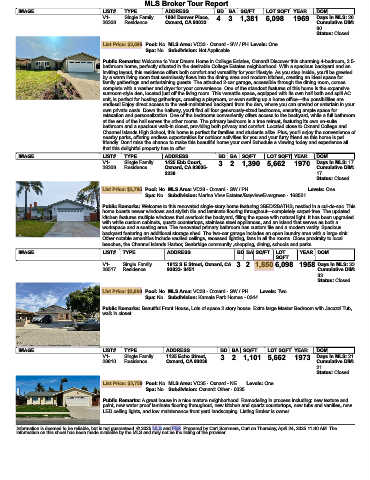 IMAGE LIST# TYPE ADDRESS BD BA SQ/FT LOT YEAR DOM