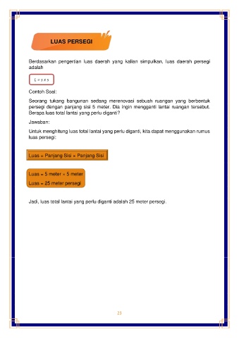 persegi dengan panjang sisi 5 meter. Dia ingin mengganti lantai ruangan tersebut.