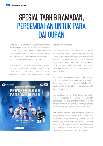 Cinta Quran Foundation menggelar kajian spesial Candra, dan Alfie Afandi.