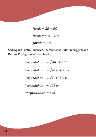 = + = 4 + 3 = Sedangkan untuk mencari perpindahan kita menggunakan Rumus Phytagoras sebagai berikut: ℎ = √ + 2 2 ℎ = √4 + 3 2 2 ℎ = √16 + 9 ℎ = √25 = 45
