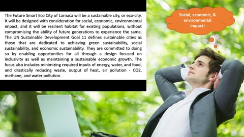 The Future Smart Eco City of Larnaca will be a sustainable city, or eco-city. Social, economic, &