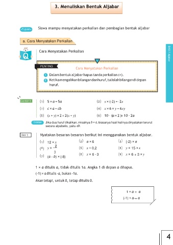 Contoh  1     1   5 × a = 5a                  2   x × (-2) = -2x