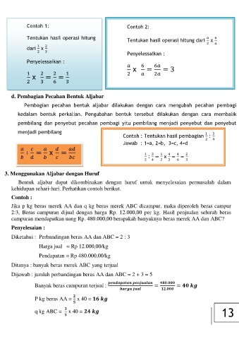 Pembagian  pecahan  bentuk  aljabar  dilakukan  dengan  cara  mengubah  pecahan  pembagi