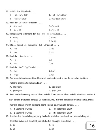 16. Hasil dari 6p q z : 3pq z adalah . . . .