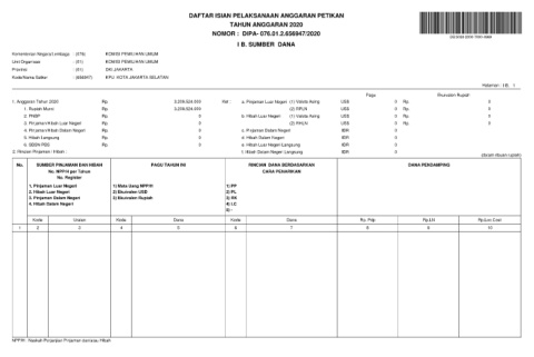 1. Anggaran Tahun 2020 Rp. 3.209.524.000 Ket : a. Pinjaman Luar Negeri (1) Valuta Asing US$ 0 Rp. 0