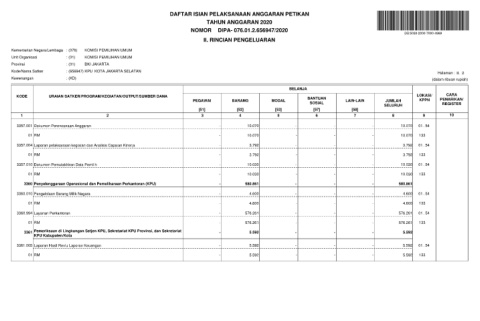 Kode/Nama Satker : (656947) KPU KOTA JAKARTA SELATAN