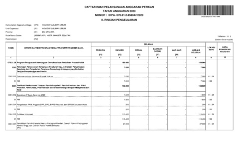 Kode/Nama Satker : (656947) KPU KOTA JAKARTA SELATAN