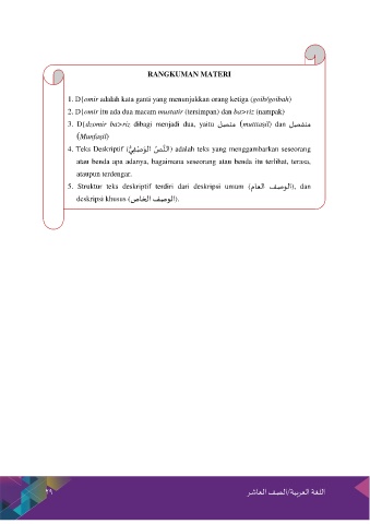 5. Struktur teks deskriptif terdiri dari deskripsi umum (ماعلا فصولا), dan