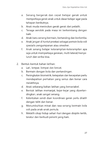 e. Anak jangan di tuntut prestasi sebagai pemsin bola voli