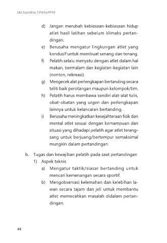 b. Tugas dan kewajiban pelatih pada saat pertandingan