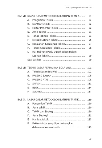 BAB VIII TEKNIK DASAR PERMAINAN BOLA VOLI .................... 101
