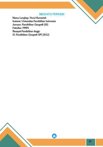 Nama Lengkap: Nurul Komariah Instansi: Universitas Pendidikan Indonesia Jurusan: Pendidikan Geografi (S2) Fakultas: FPIPS Riwayat Pendidikan tinggi: S1 Pendidikan Geografi UPI (2012) 35