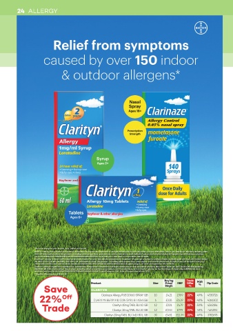 Trade                              Clarityn 10mg TABL BLI 20 GB  12  £2.01  £4.79  22%  50%  4262184