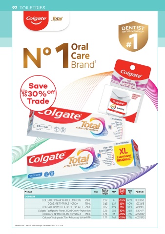 COLGATE TP WHITE & FRESH BREATH 75ML 0.67 1.29 9% 38% 4232187